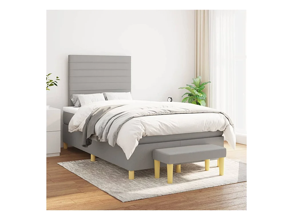 Sommier à lattes de lit et matelas gris clair 120x190 tissu
