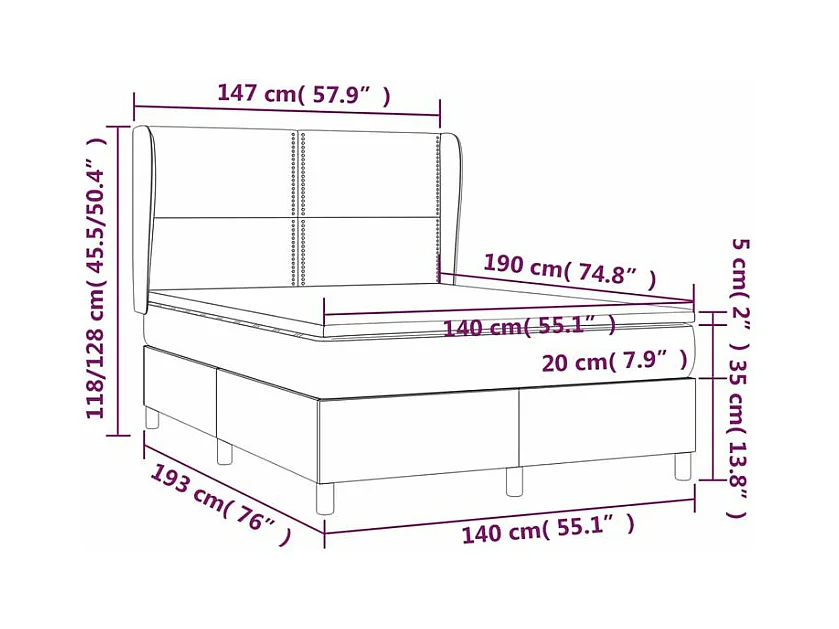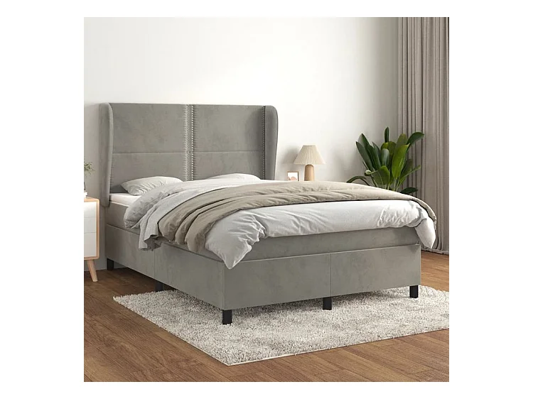 Sommier à lattes de lit et matelas Gris clair 140x190 Velours