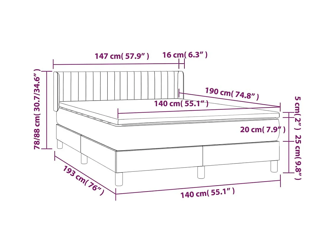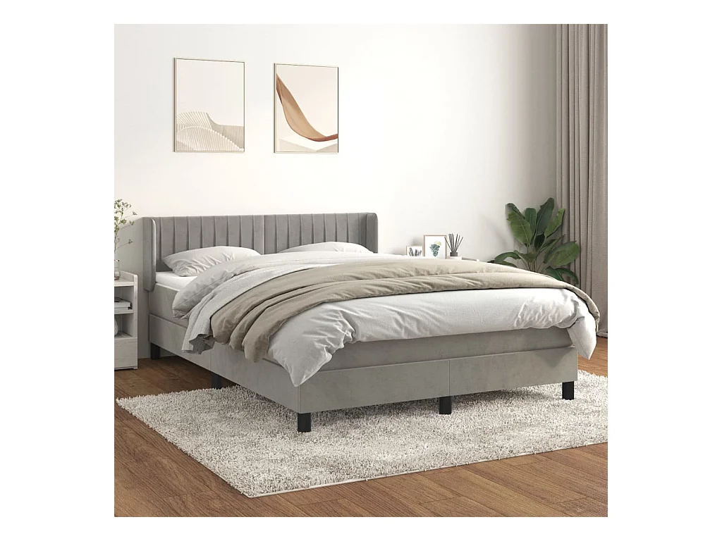 Sommier à lattes de lit et matelas Gris clair 140x190 Velours