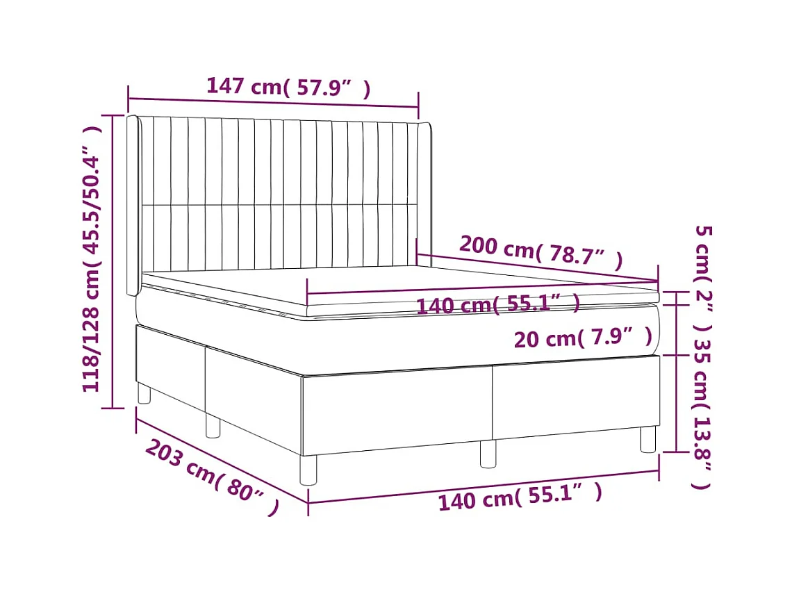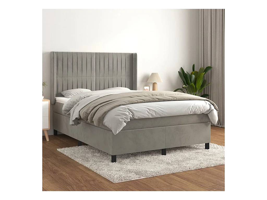 Sommier à lattes de lit et matelas Gris clair 140x200 Velours