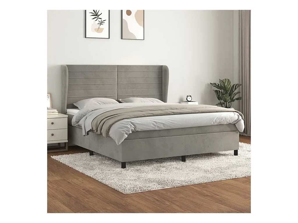 Sommier à lattes de lit et matelas Gris clair 180x200 Velours