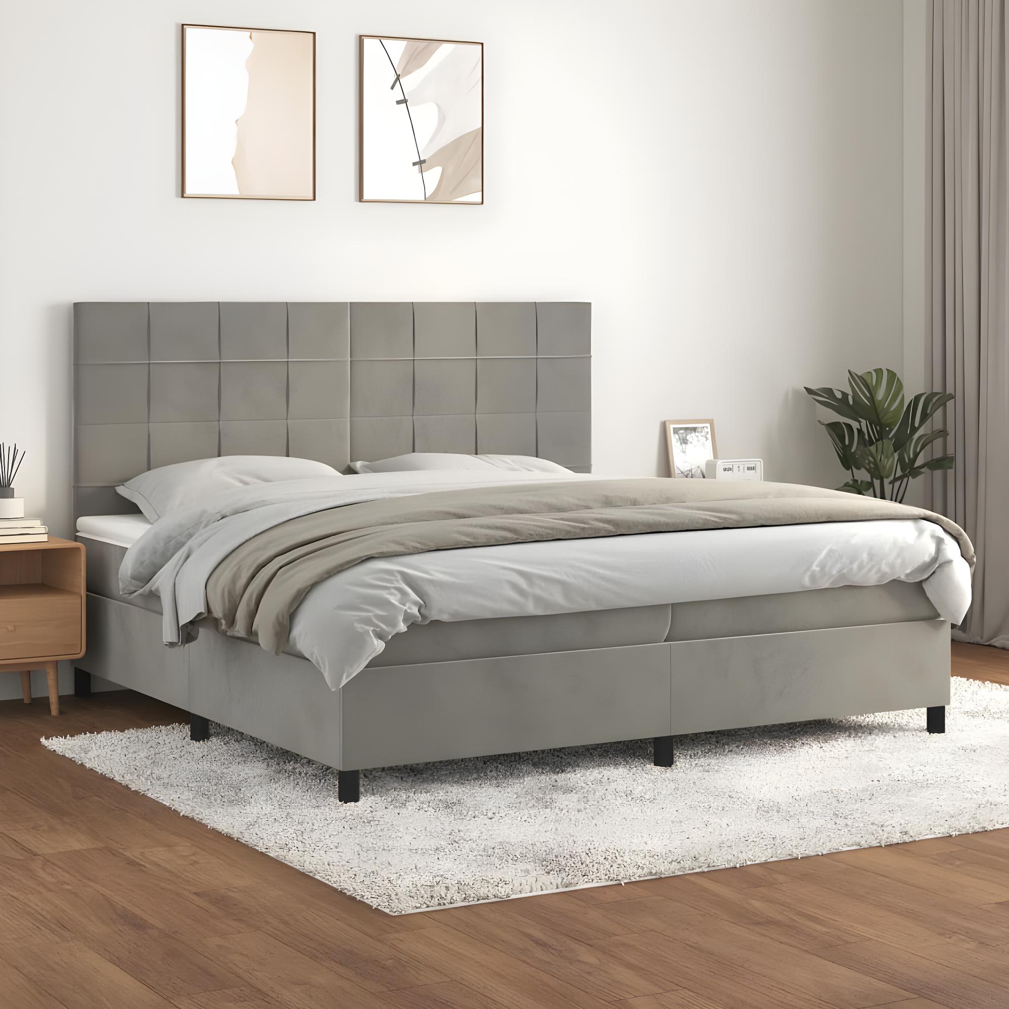 Sommier à lattes de lit et matelas Gris clair 200x200 Velours