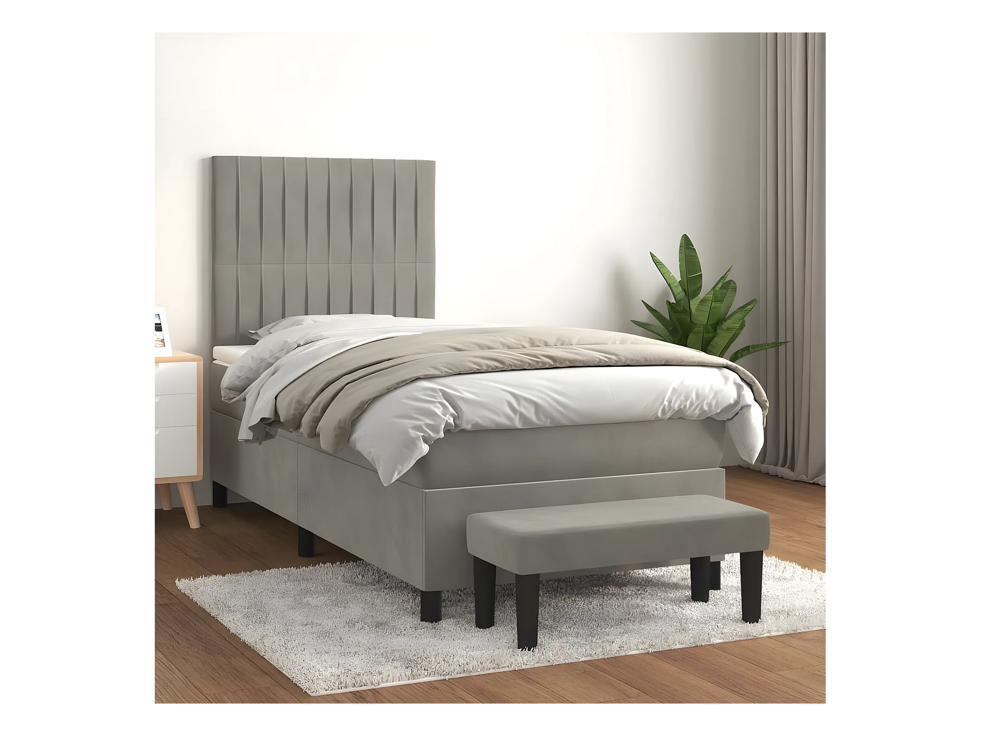 Sommier à lattes de lit et matelas Gris clair 80x200 Velours