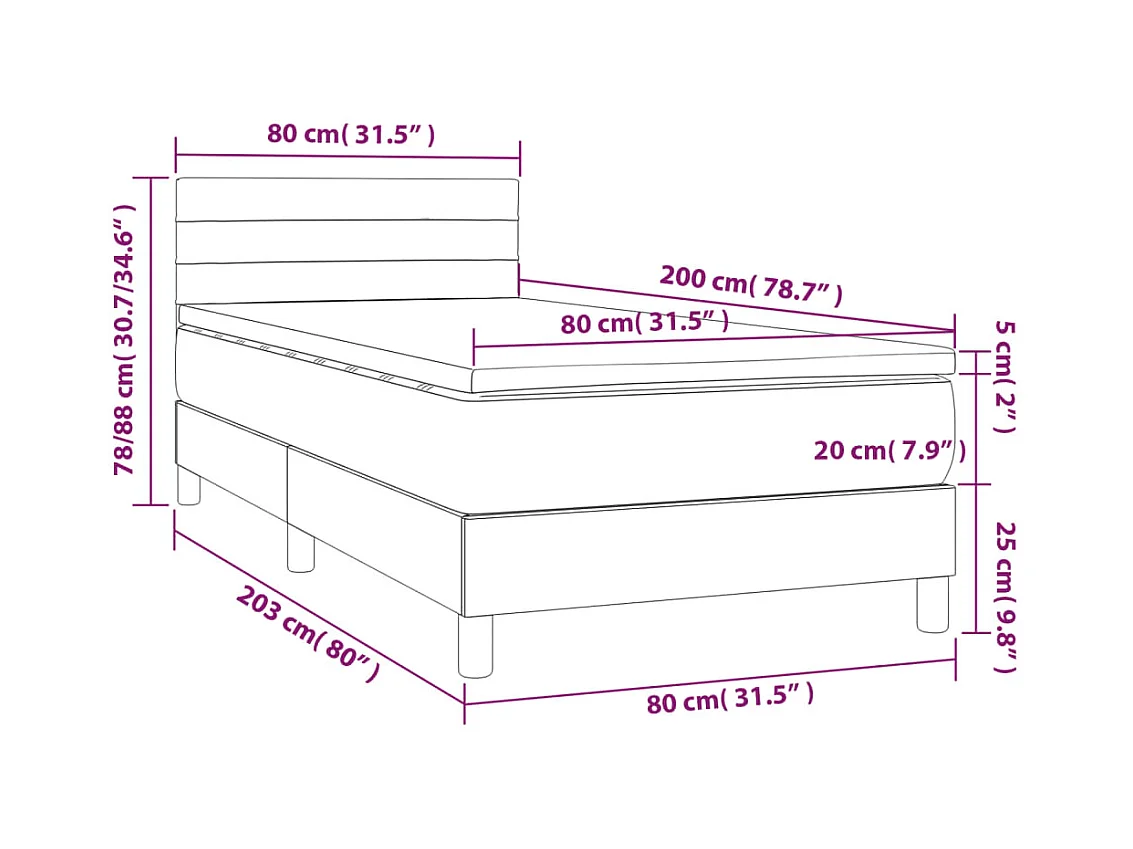 Sommier à lattes de lit et matelas Gris clair 80x200 Velours