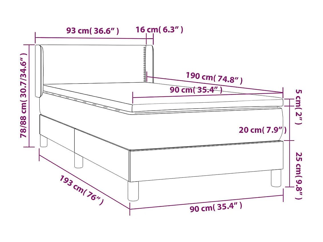 Sommier à lattes de lit et matelas Gris clair 90x190 Tissu