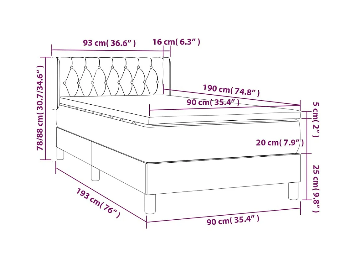 Sommier à lattes de lit et matelas Gris clair 90x190 Tissu