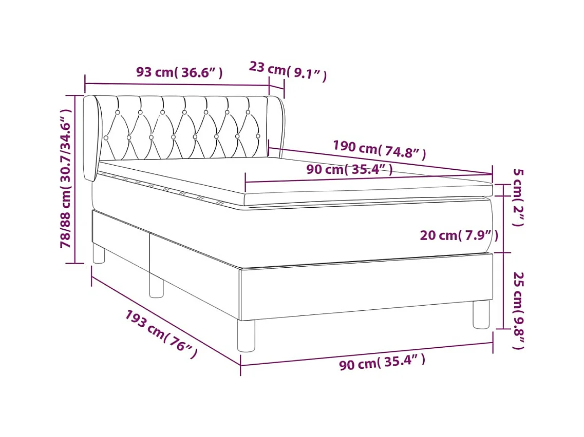 Sommier à lattes de lit et matelas Gris clair 90x190 Tissu