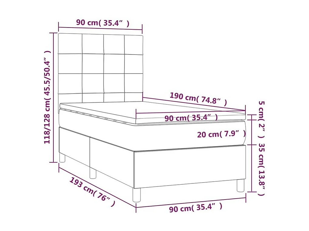 Sommier à lattes de lit et matelas Gris clair 90x190 Velours