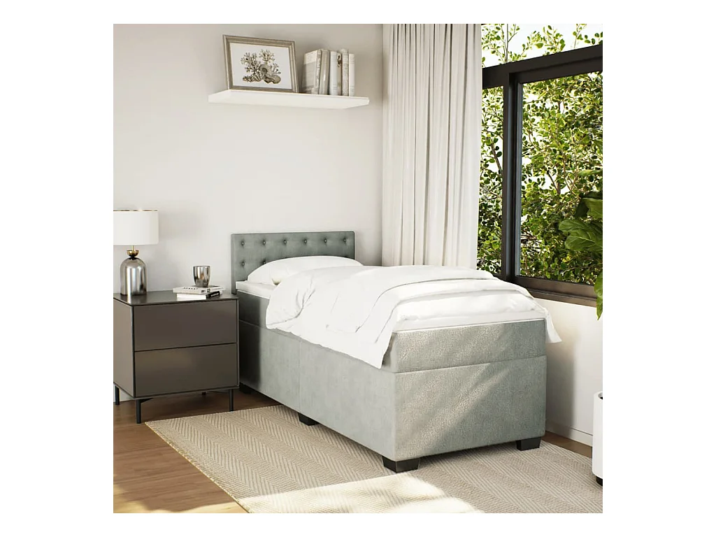 Sommier à lattes de lit et matelas Gris clair 90x200 cm Velours