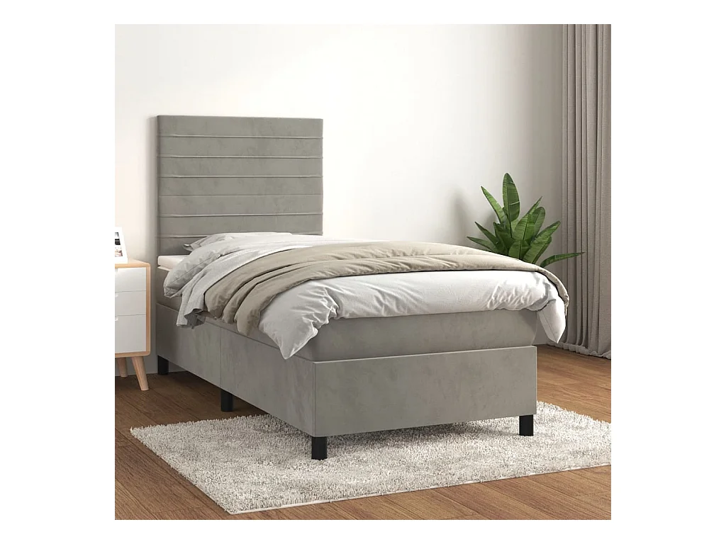 Sommier à lattes de lit et matelas Gris clair 90x200 Velours