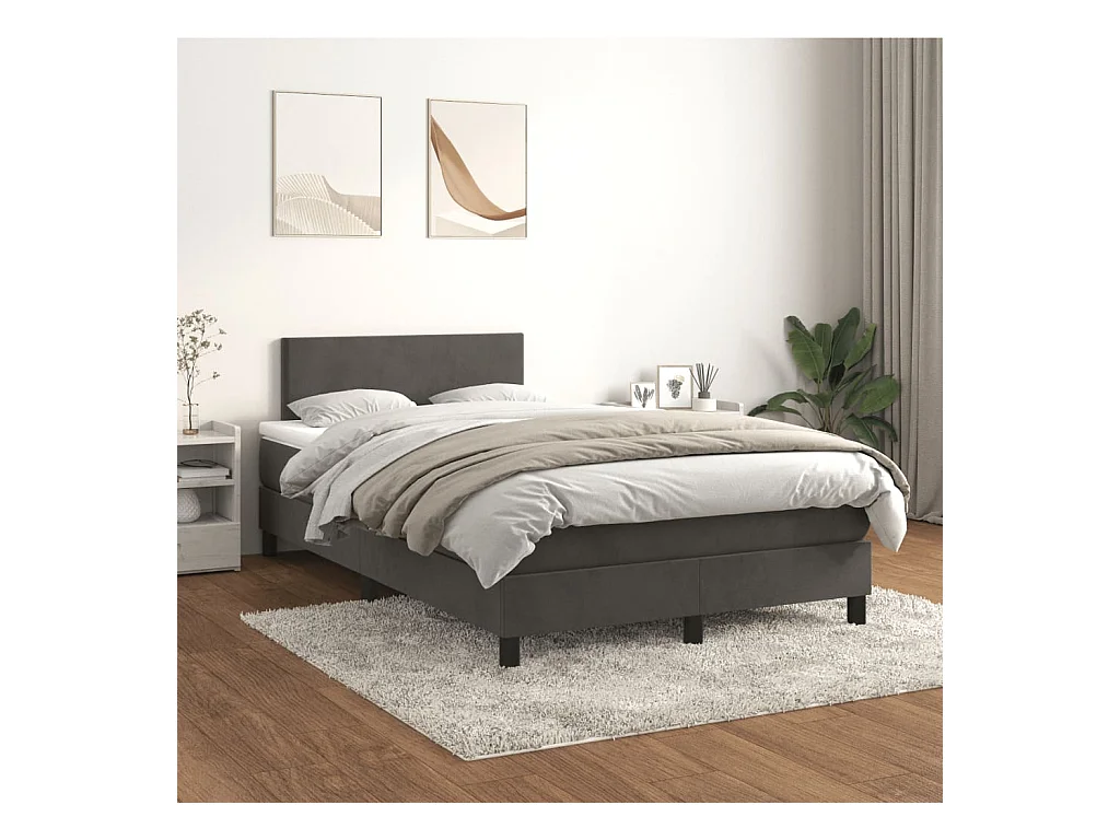 Sommier à lattes de lit et matelas gris foncé 120x190 velours
