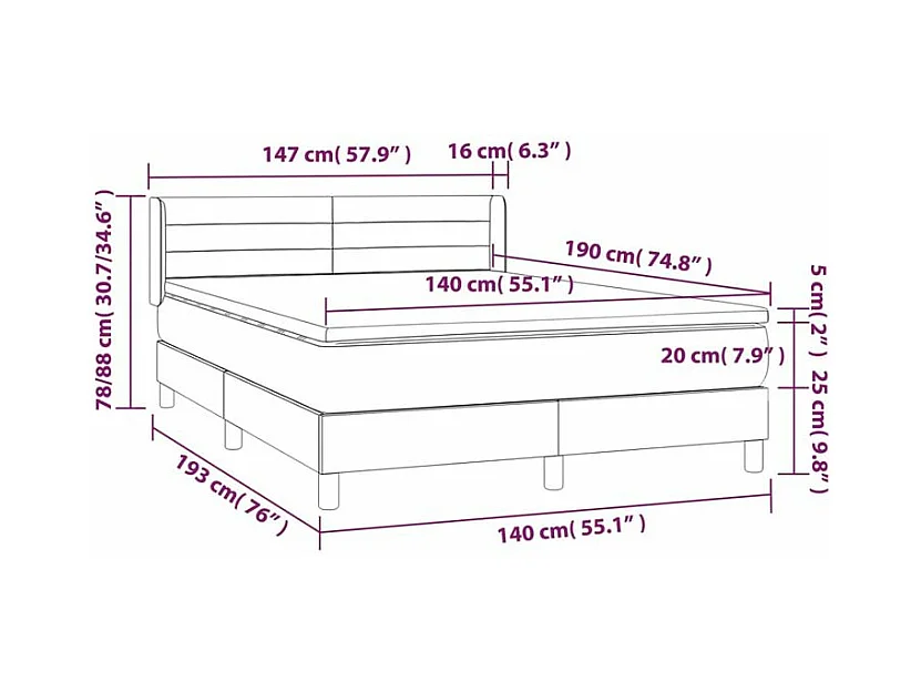 Sommier à lattes de lit et matelas Gris foncé 140x190 Velours