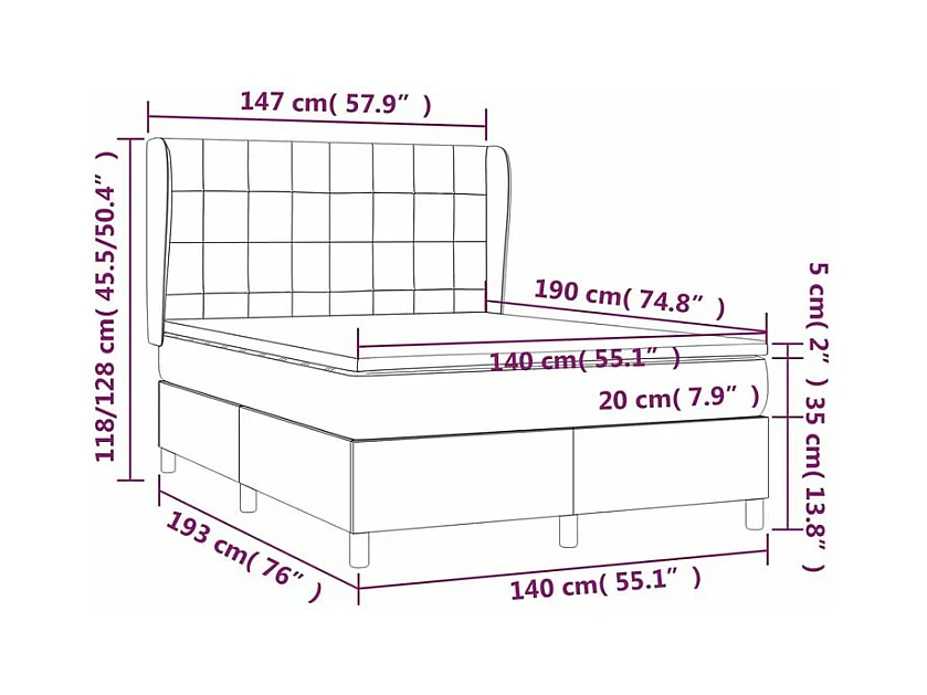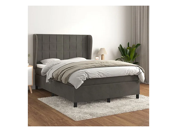 Sommier à lattes de lit et matelas Gris foncé 140x190 Velours