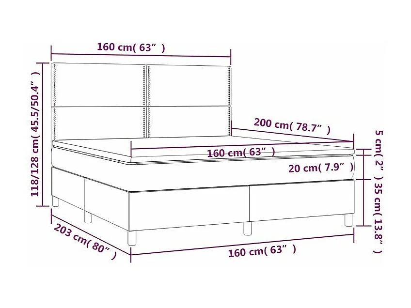 Sommier à lattes de lit et matelas Gris foncé 160x200 Velours