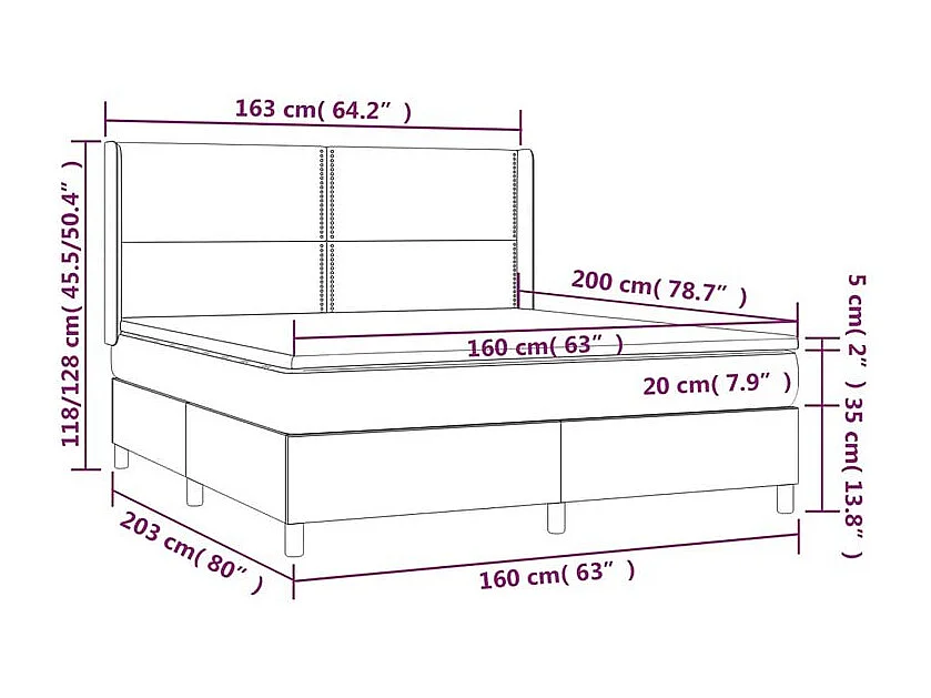 Sommier à lattes de lit et matelas Gris foncé 160x200 Velours