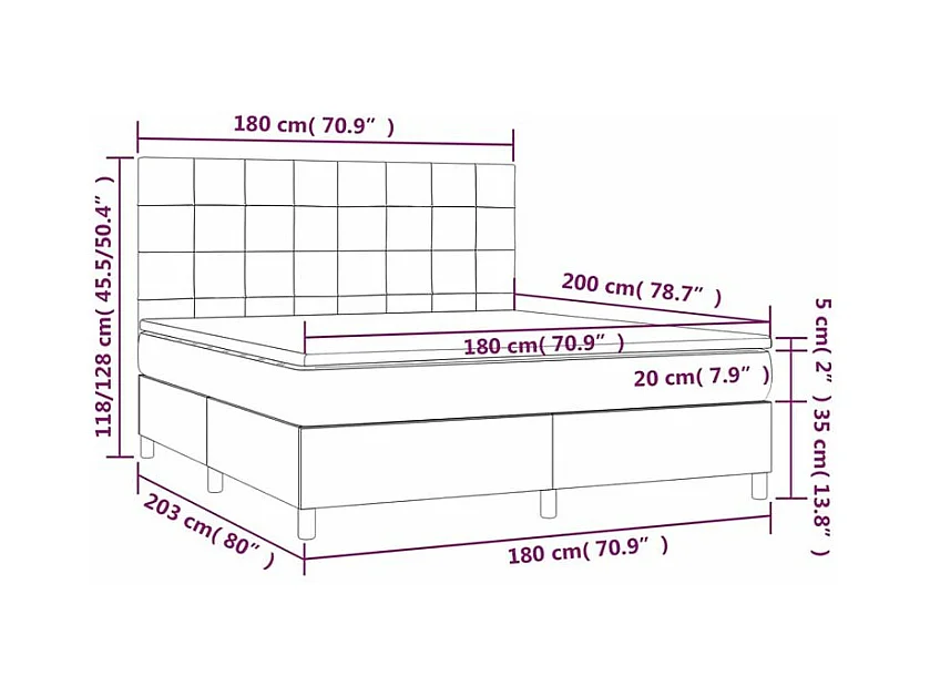 Sommier à lattes de lit et matelas Gris foncé 180x200 Velours