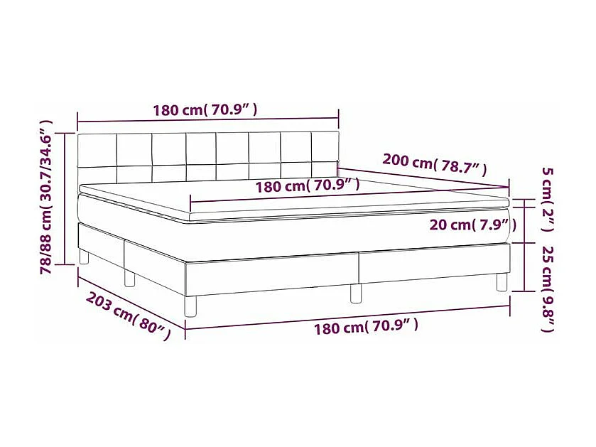 Sommier à lattes de lit et matelas Gris foncé 180x200 Velours