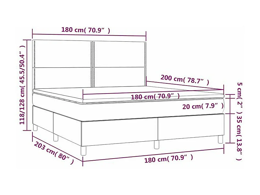 Sommier à lattes de lit et matelas Gris foncé 180x200 Velours