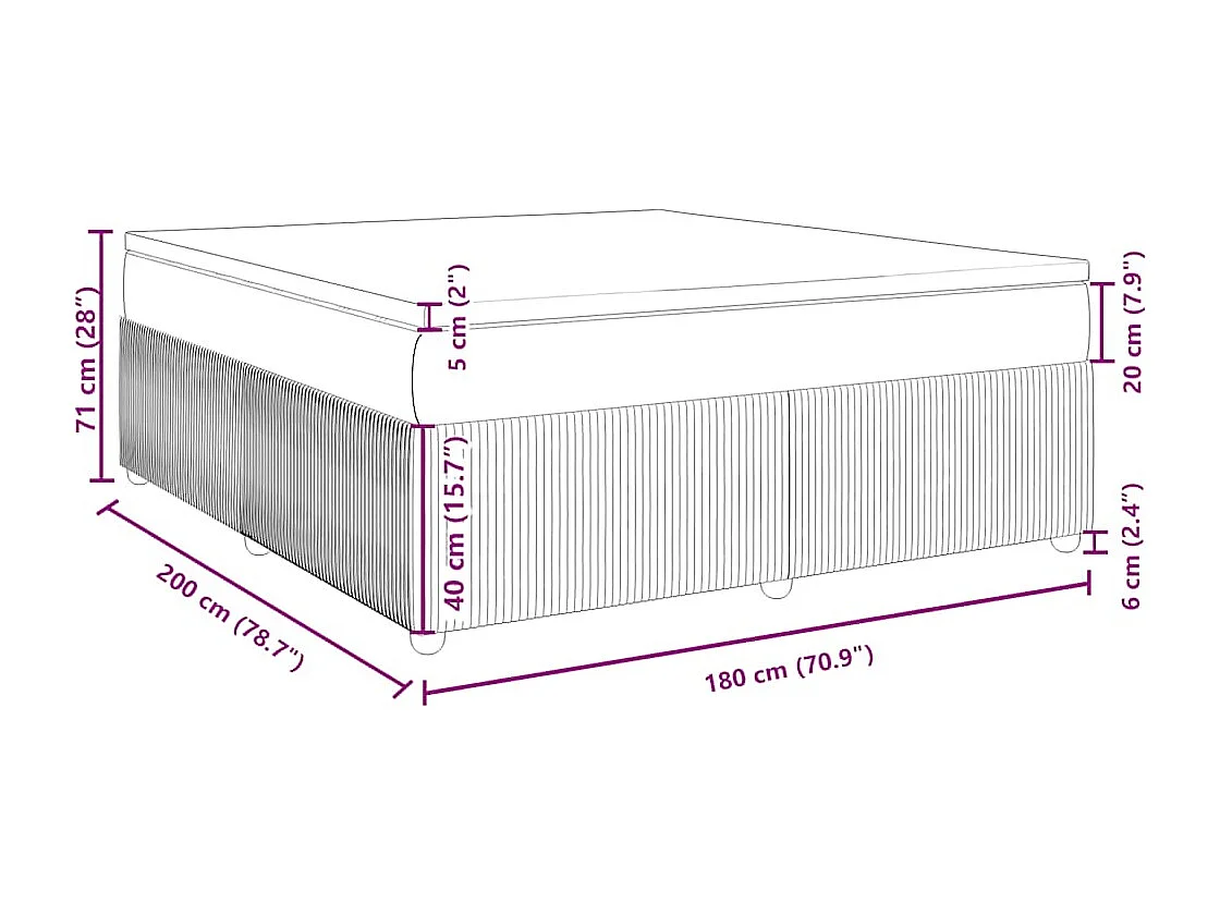 Sommier à lattes de lit et matelas Gris foncé 180x200cm Velours