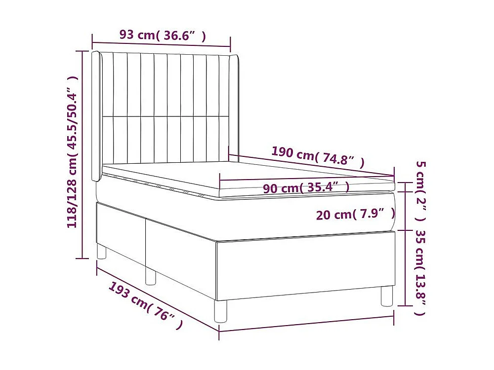 Sommier à lattes de lit et matelas Gris foncé 90x190 Tissu
