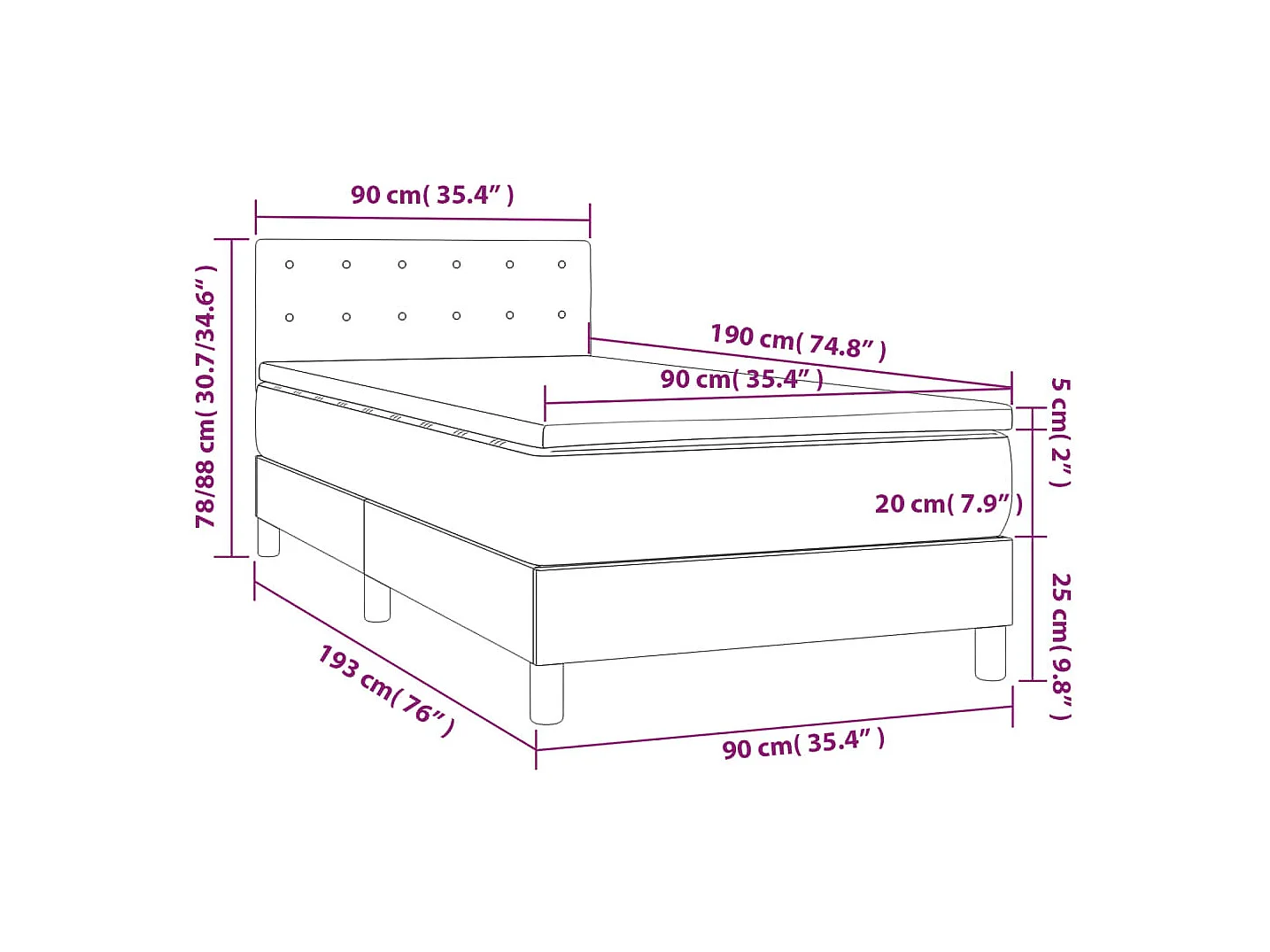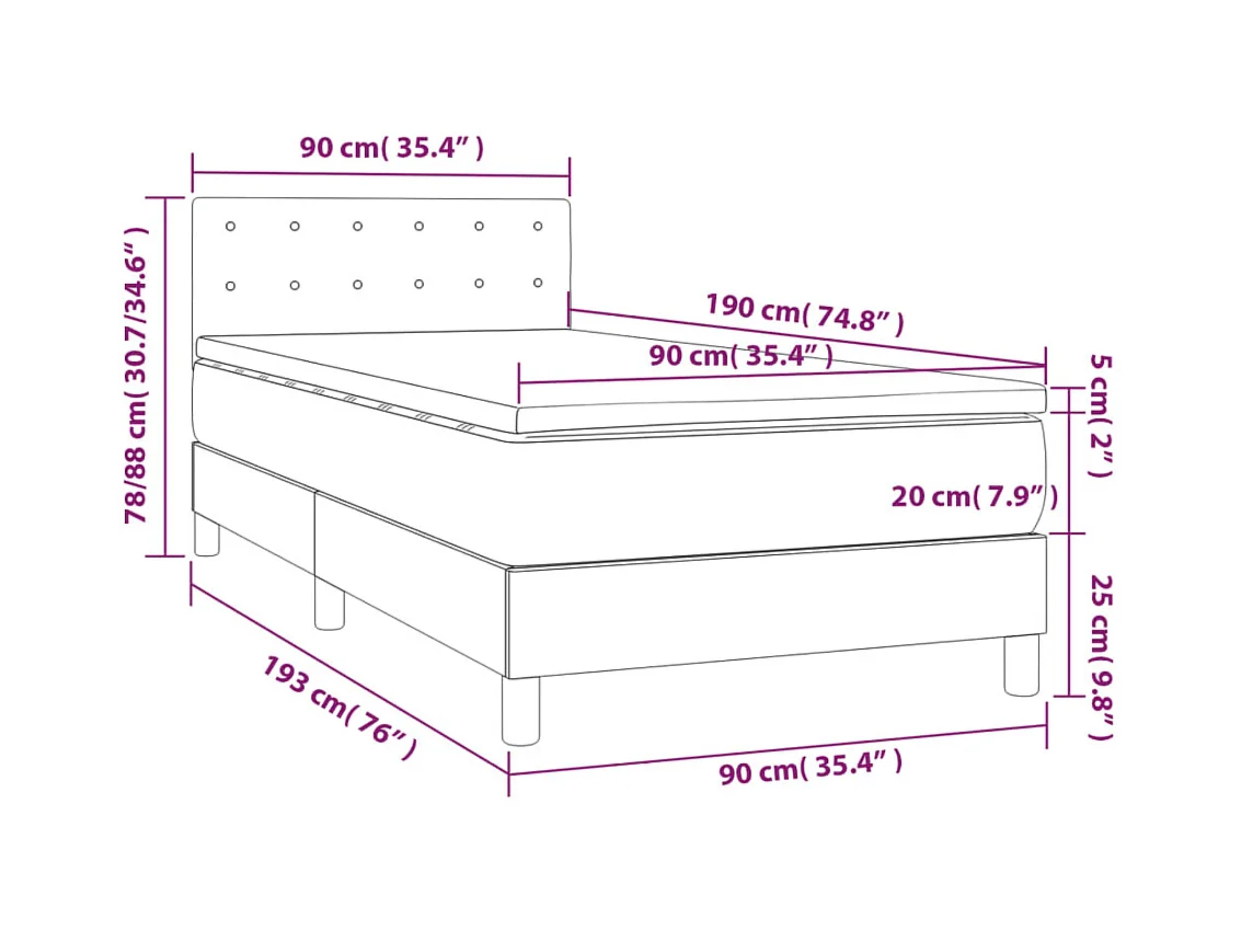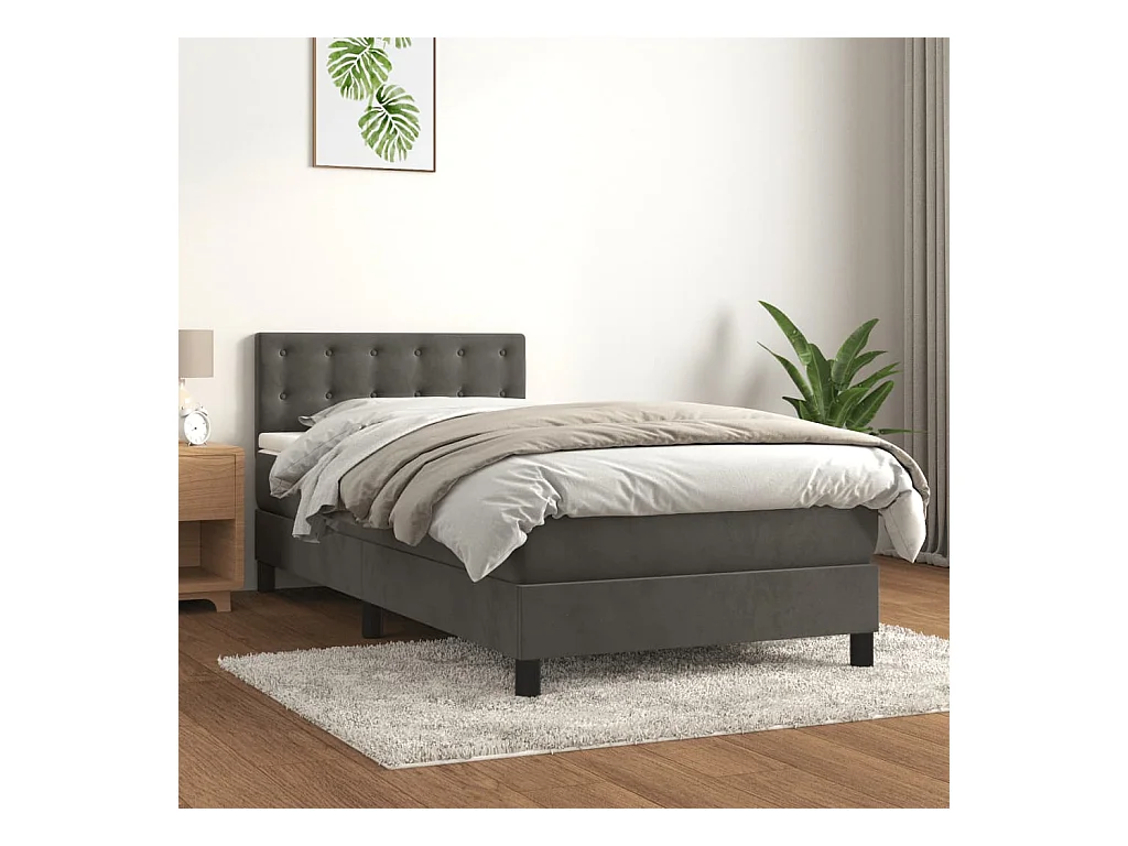 Sommier à lattes de lit et matelas Gris foncé 90x190 Velours