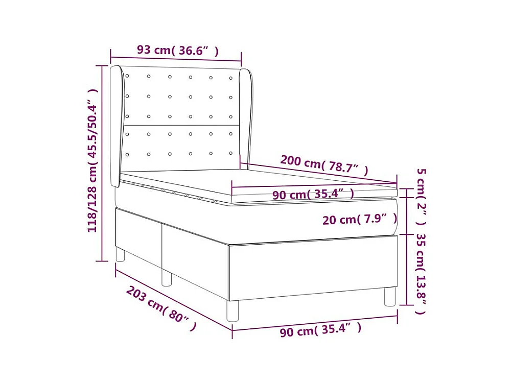 Sommier à lattes de lit et matelas Gris foncé 90x200 Velours