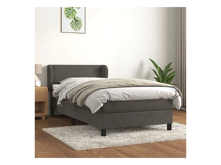 Sommier à lattes de lit et matelas Gris foncé 90x200 Velours