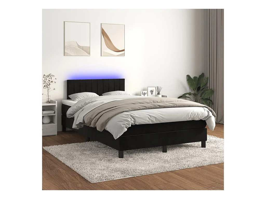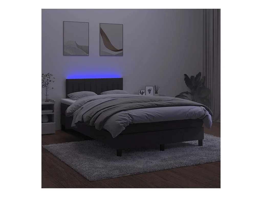 Sommier à lattes de lit et matelas LED noir 120x190 velours