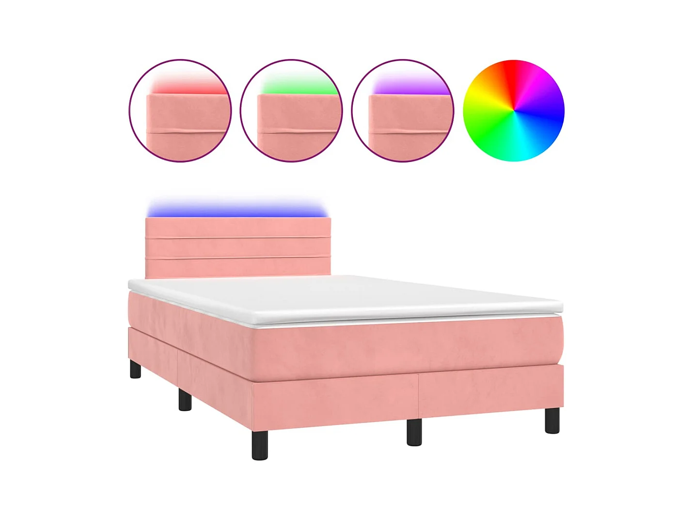 Sommier à lattes de lit et matelas LED rose 120x190 cm velours