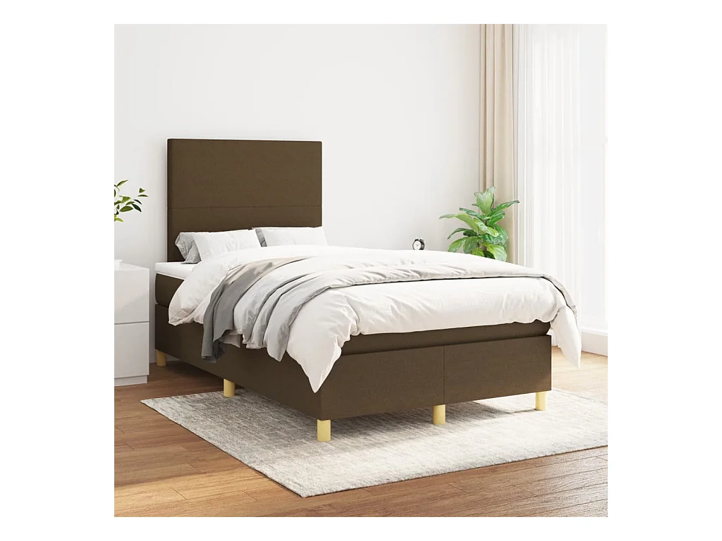 Sommier à lattes de lit et matelas marron foncé 120x190 tissu