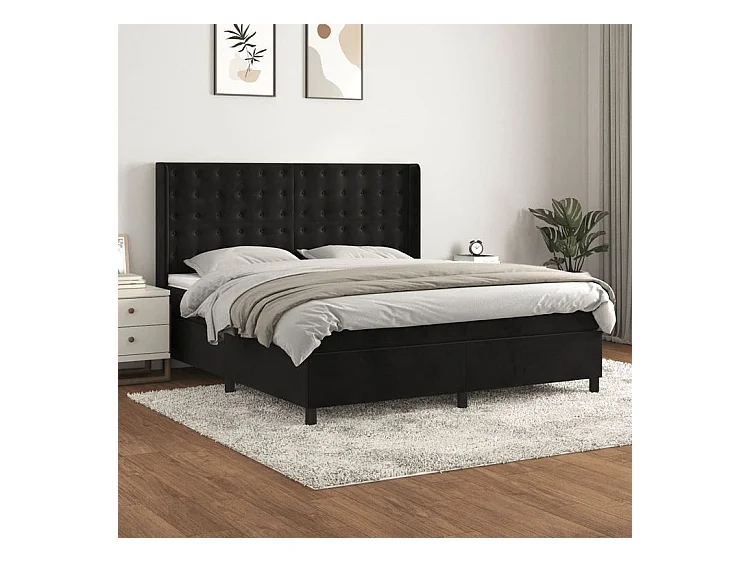 Sommier à lattes de lit et matelas Noir 160x200 Velours