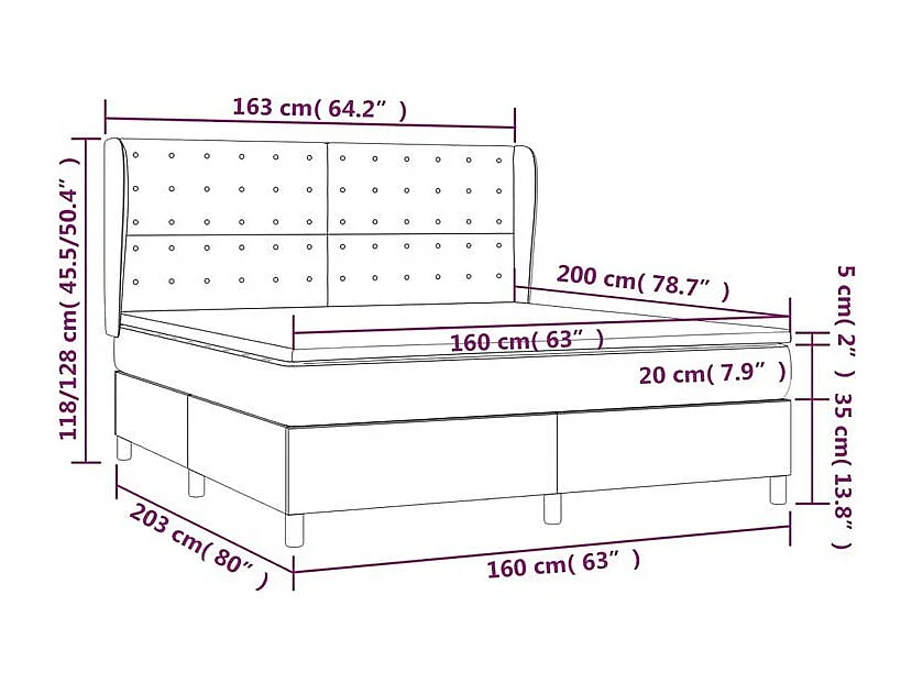 Sommier à lattes de lit et matelas Noir 160x200 Velours