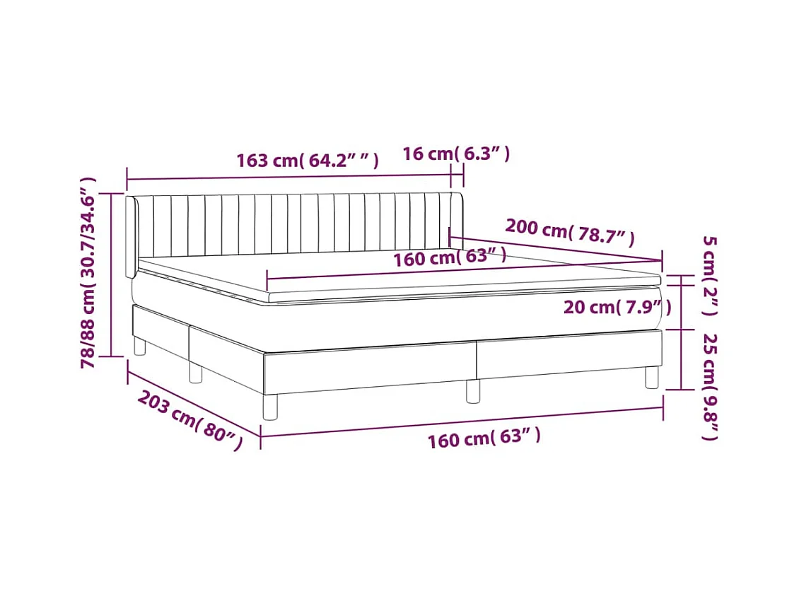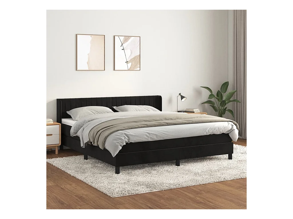 Sommier à lattes de lit et matelas Noir 160x200 Velours