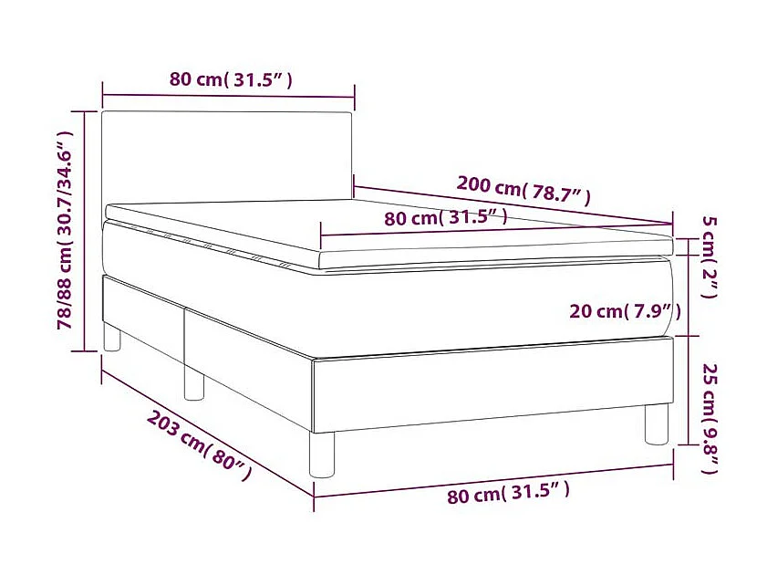 Sommier à lattes de lit et matelas Noir 80x200 Tissu