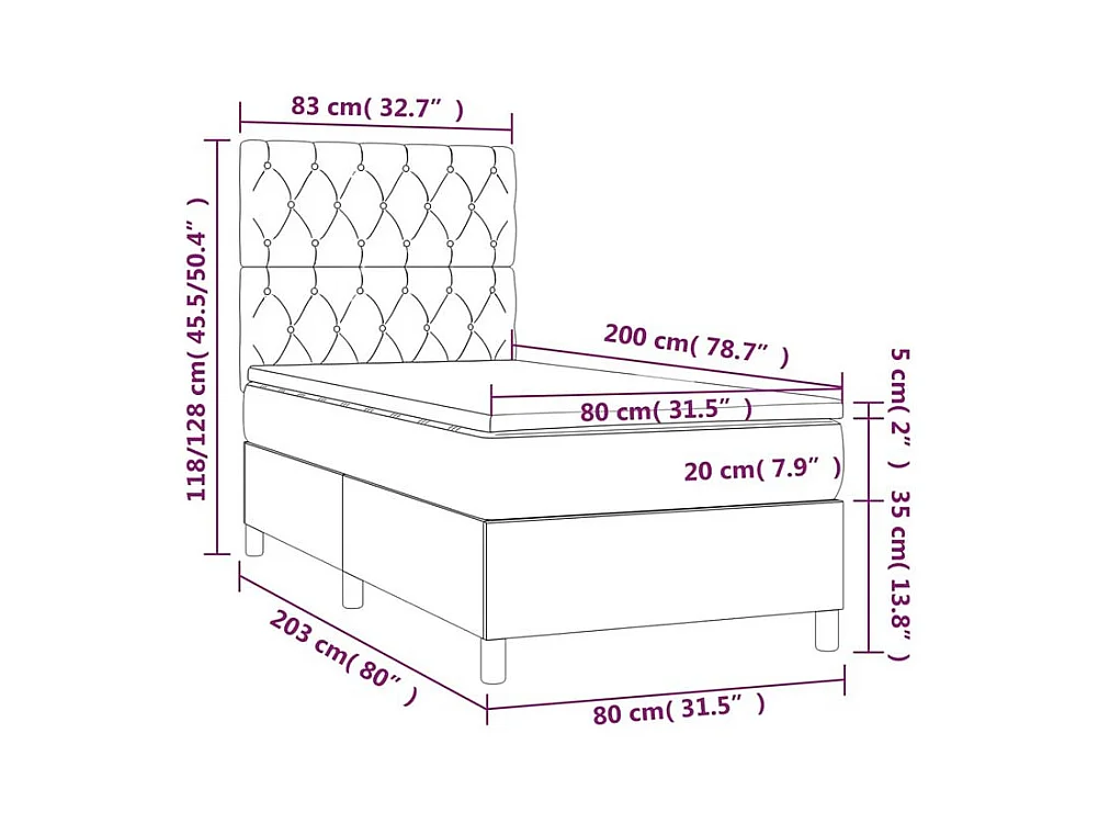 Sommier à lattes de lit et matelas Noir 80x200 Tissu