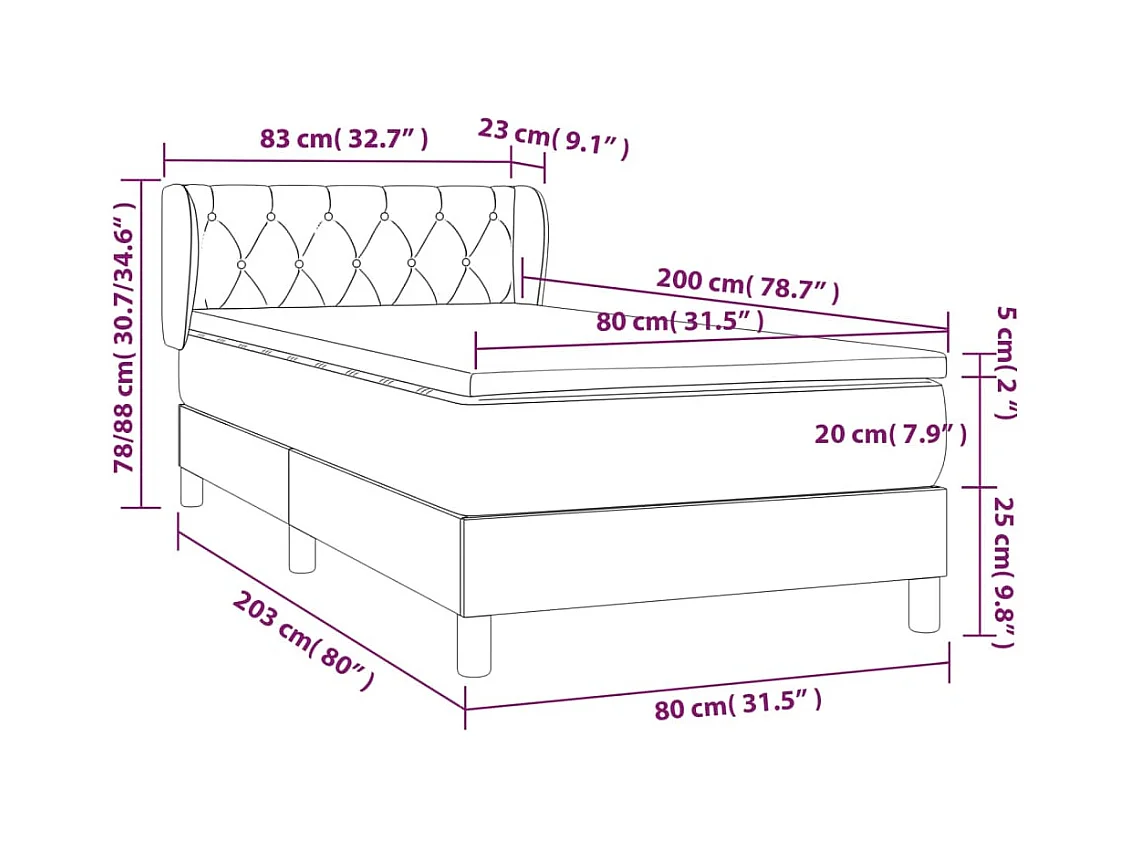 Sommier à lattes de lit et matelas Noir 80x200 Velours
