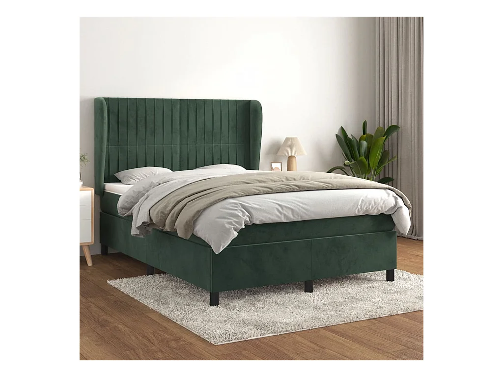 Sommier à lattes de lit et matelas Vert foncé 140x190 Velours