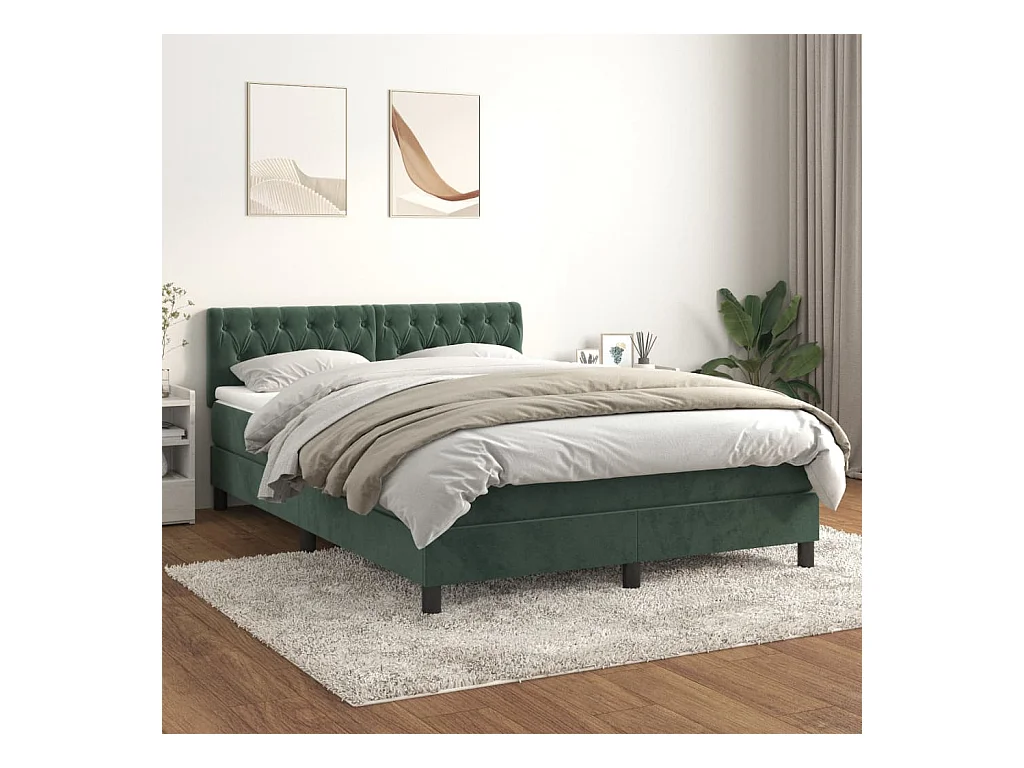 Sommier à lattes de lit et matelas Vert foncé 140x190 Velours