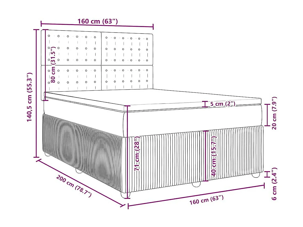 Sommier à lattes de lit et matelas Vert foncé 160x200cm Velours