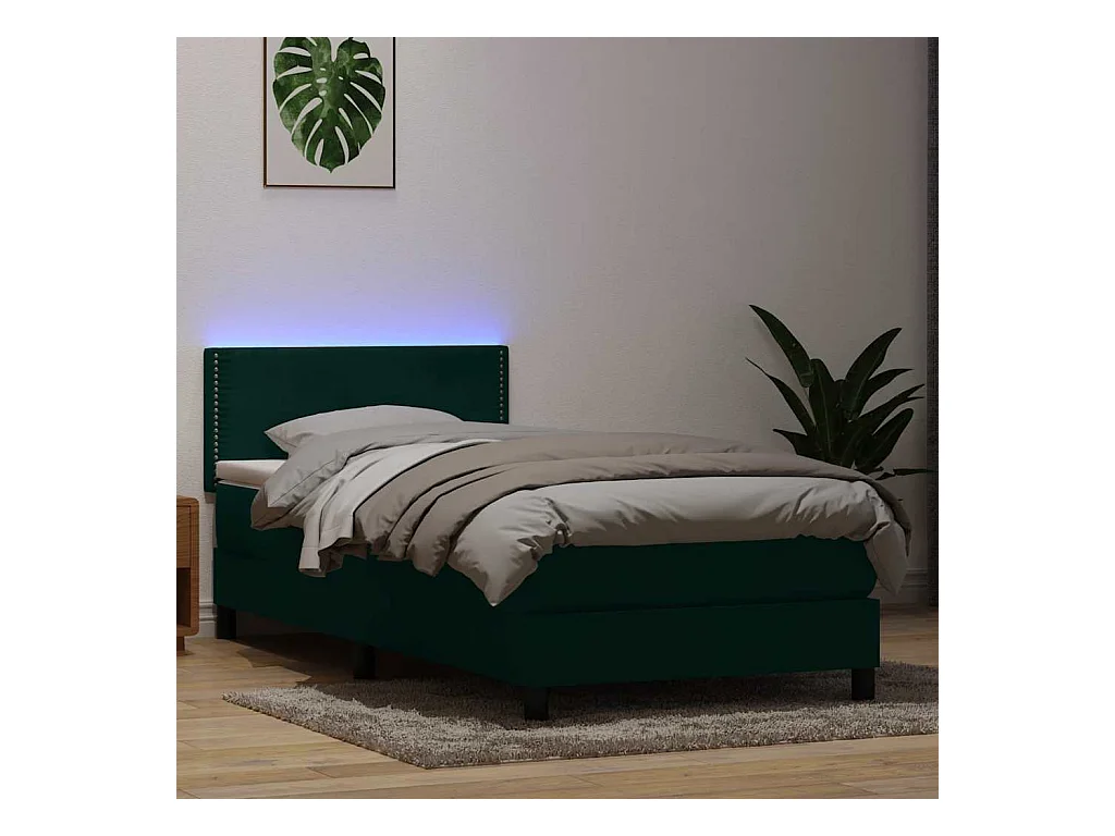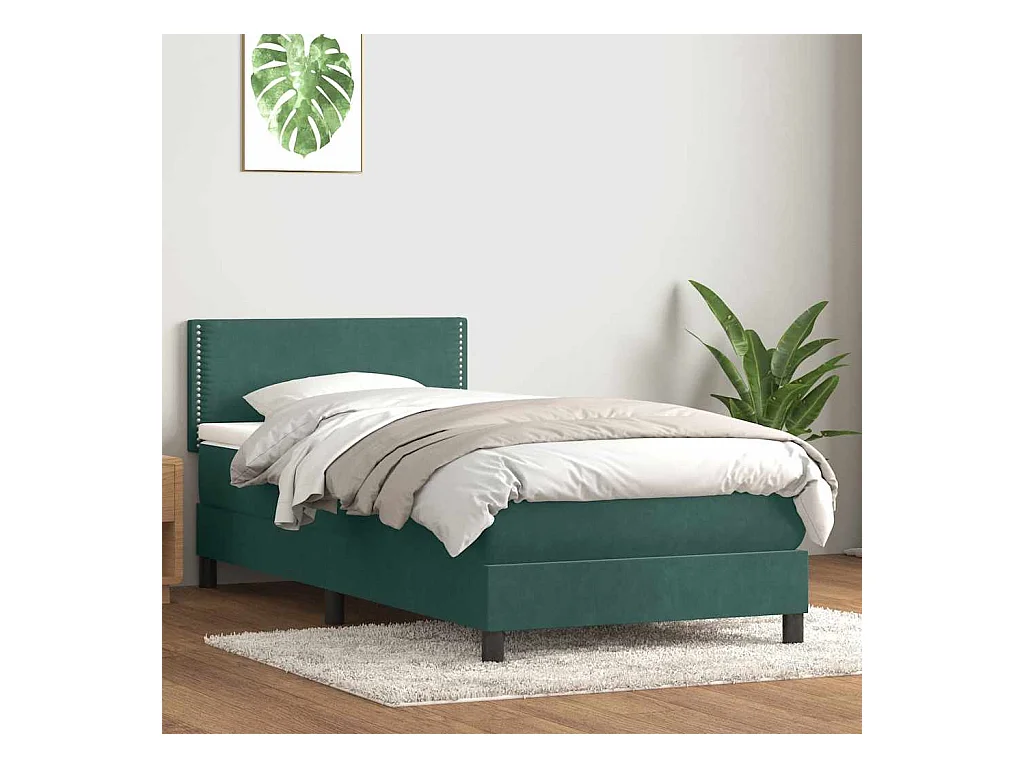Sommier à lattes de lit et matelas vert foncé 80x220 cm velours