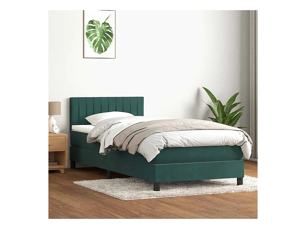 Sommier à lattes de lit et matelas vert foncé 80x220 cm velours