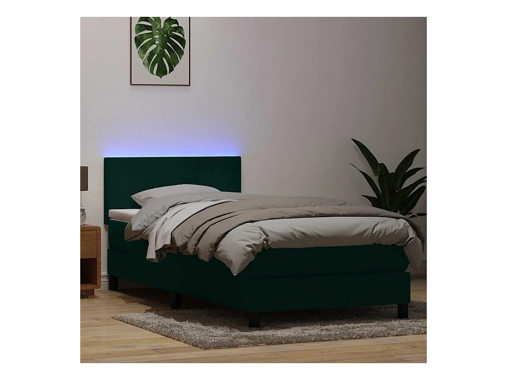 Sommier à lattes de lit et matelas vert foncé 80x220 cm velours