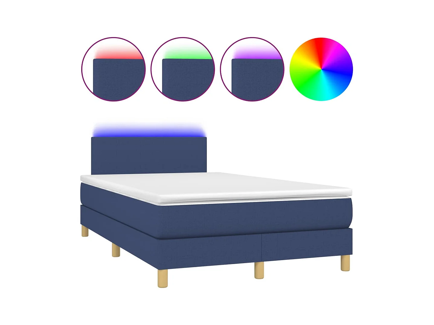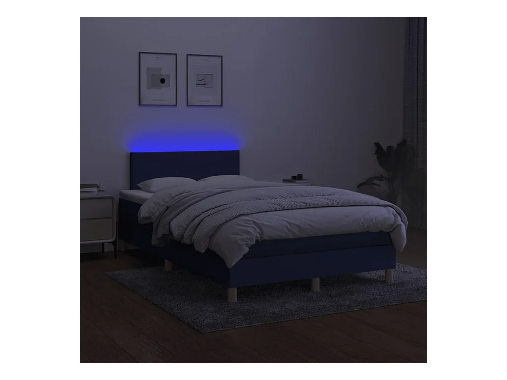 Sommier à lattes de lit matelas et LED bleu 120x190 cm tissu