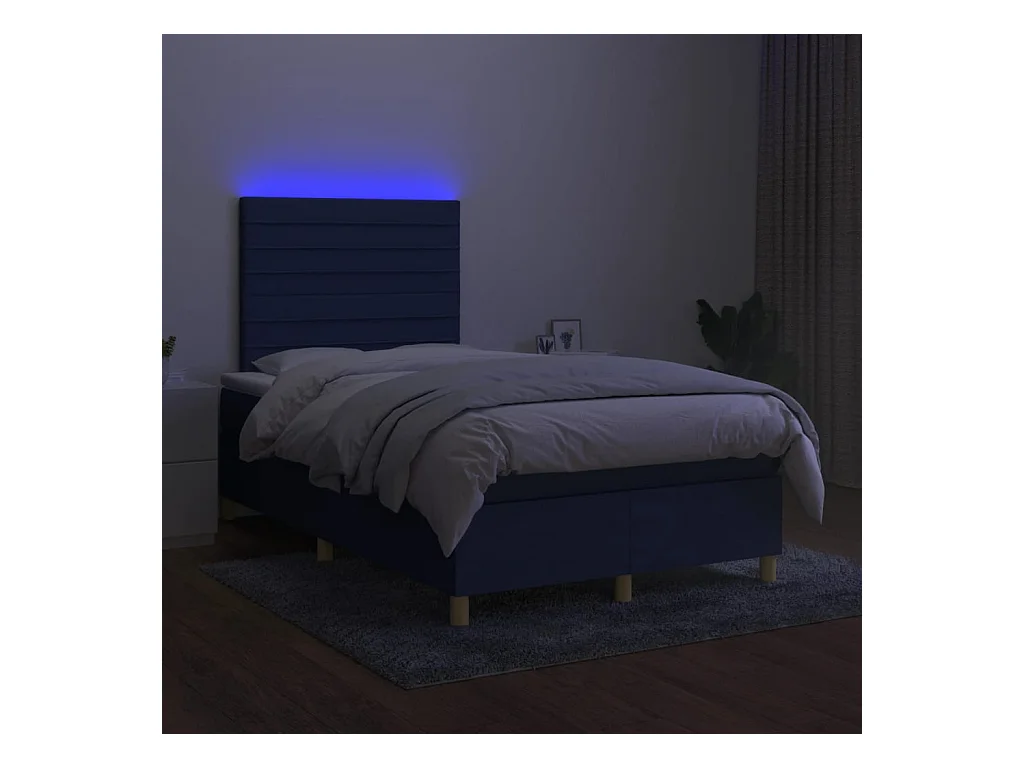 Sommier à lattes de lit matelas et LED bleu 120x190 tissu