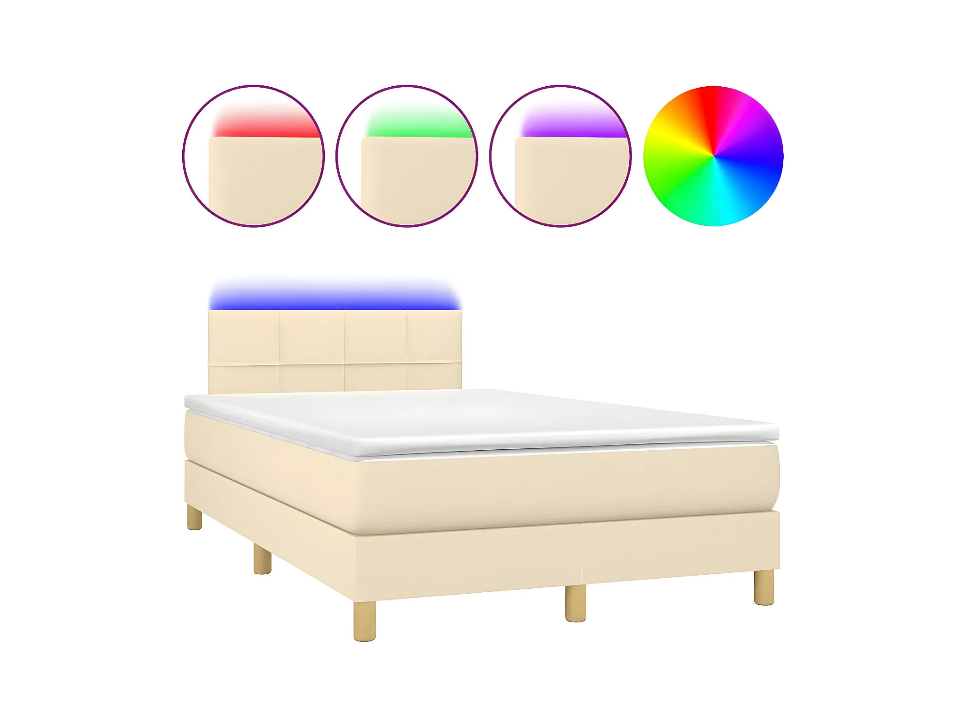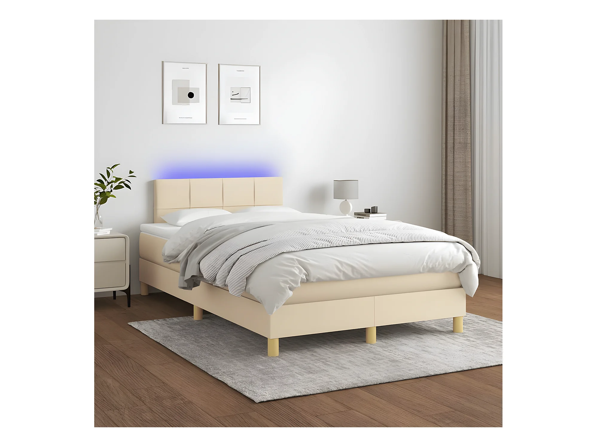 Sommier à lattes de lit matelas et LED crème 120x190 tissu