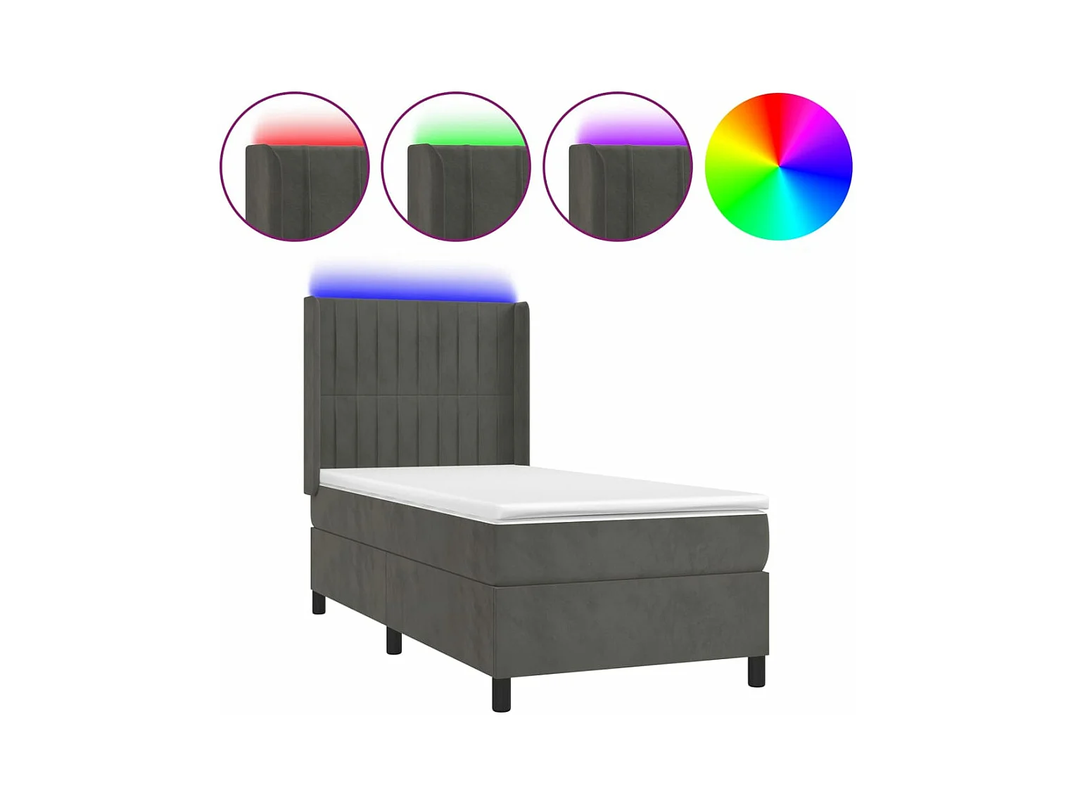 Sommier à lattes de lit matelas et LED Gris foncé 100x200