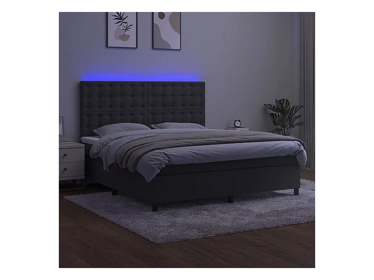 Sommier à lattes de lit matelas et LED Gris foncé 160x200