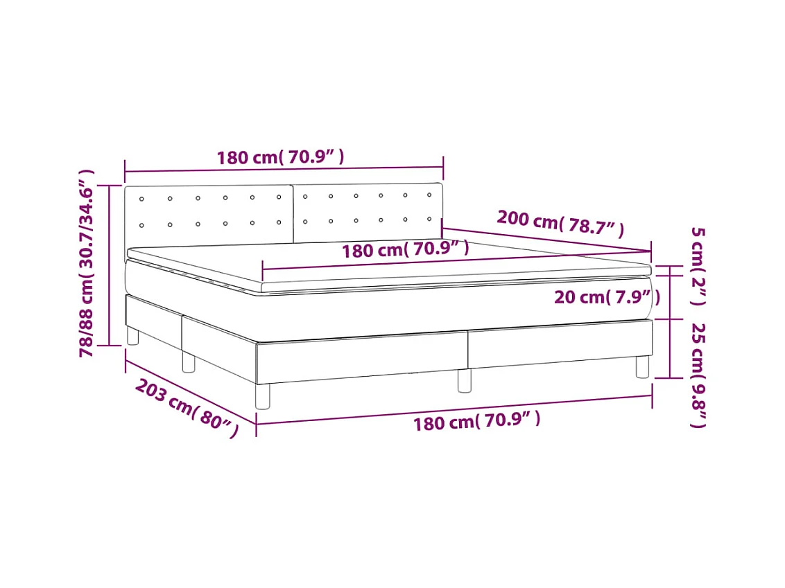 Sommier à lattes de lit matelas et LED Gris foncé 180x200