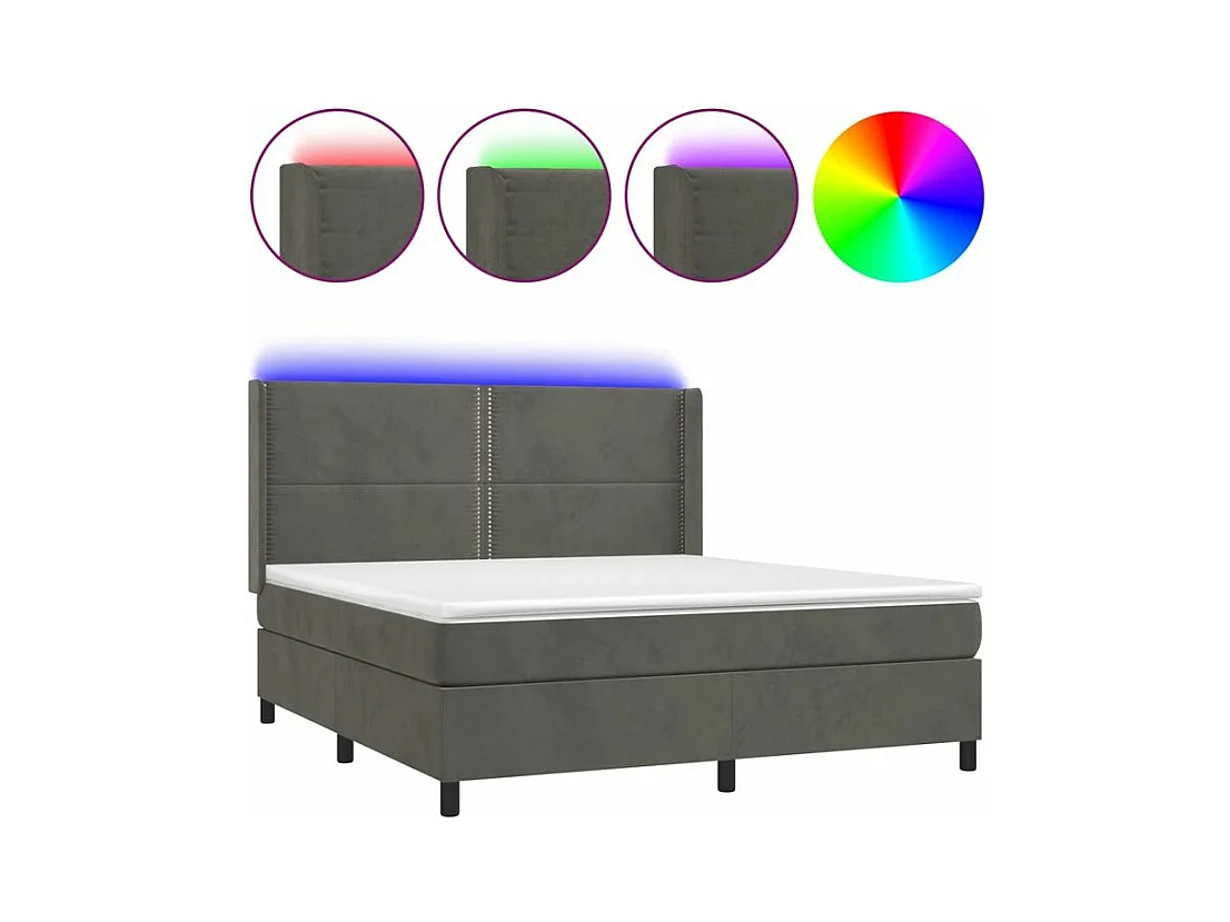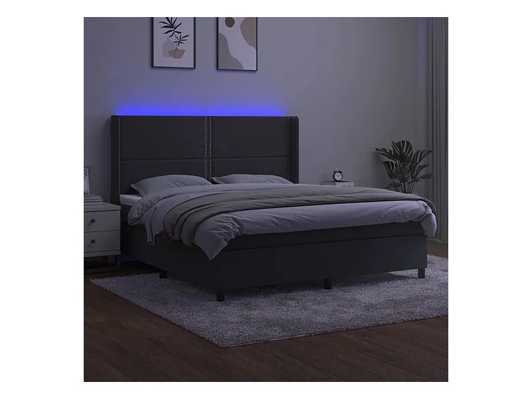 Sommier à lattes de lit matelas et LED Gris foncé 180x200