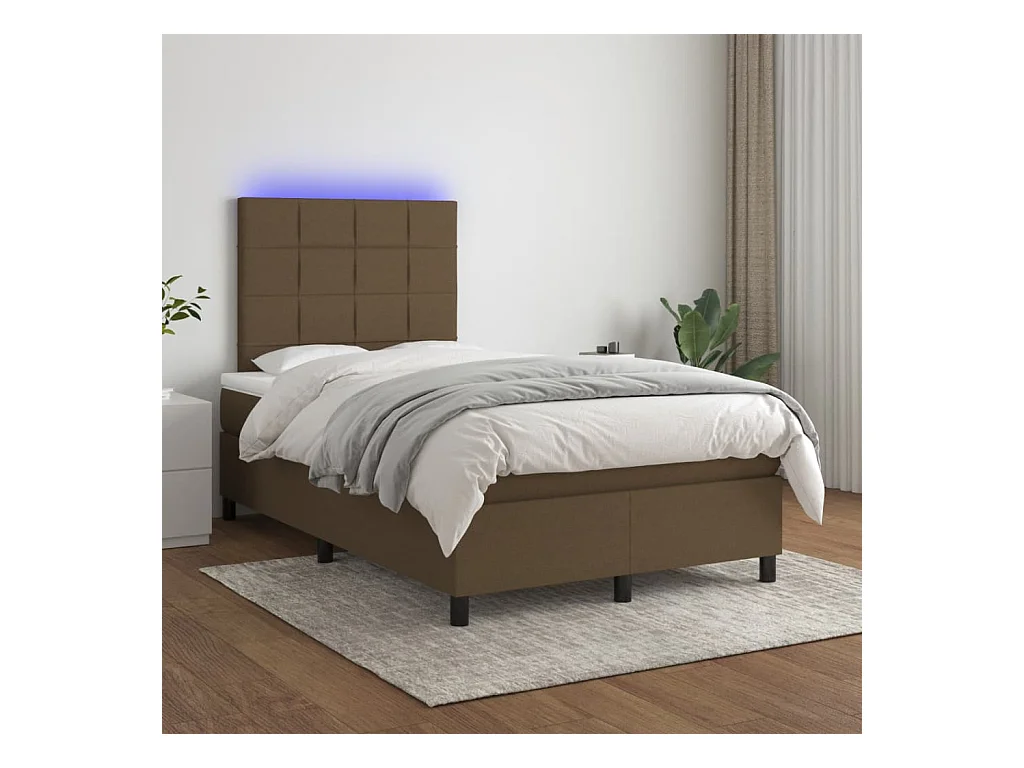 Sommier à lattes de lit matelas et LED marron foncé 120x190